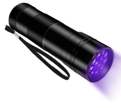 4. A UV Flashlight that works on carpets, curtains, furniture & rugs or just about any fabric.