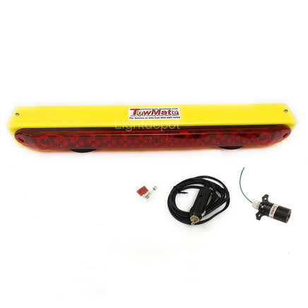 22 Inches wireless magnetic taillight system. This system includes a charge cord to allow recharge from a cigarette socket and a 7-pin transmitter. Range 1000 feet. Uses one 12V1.2AH battery.
